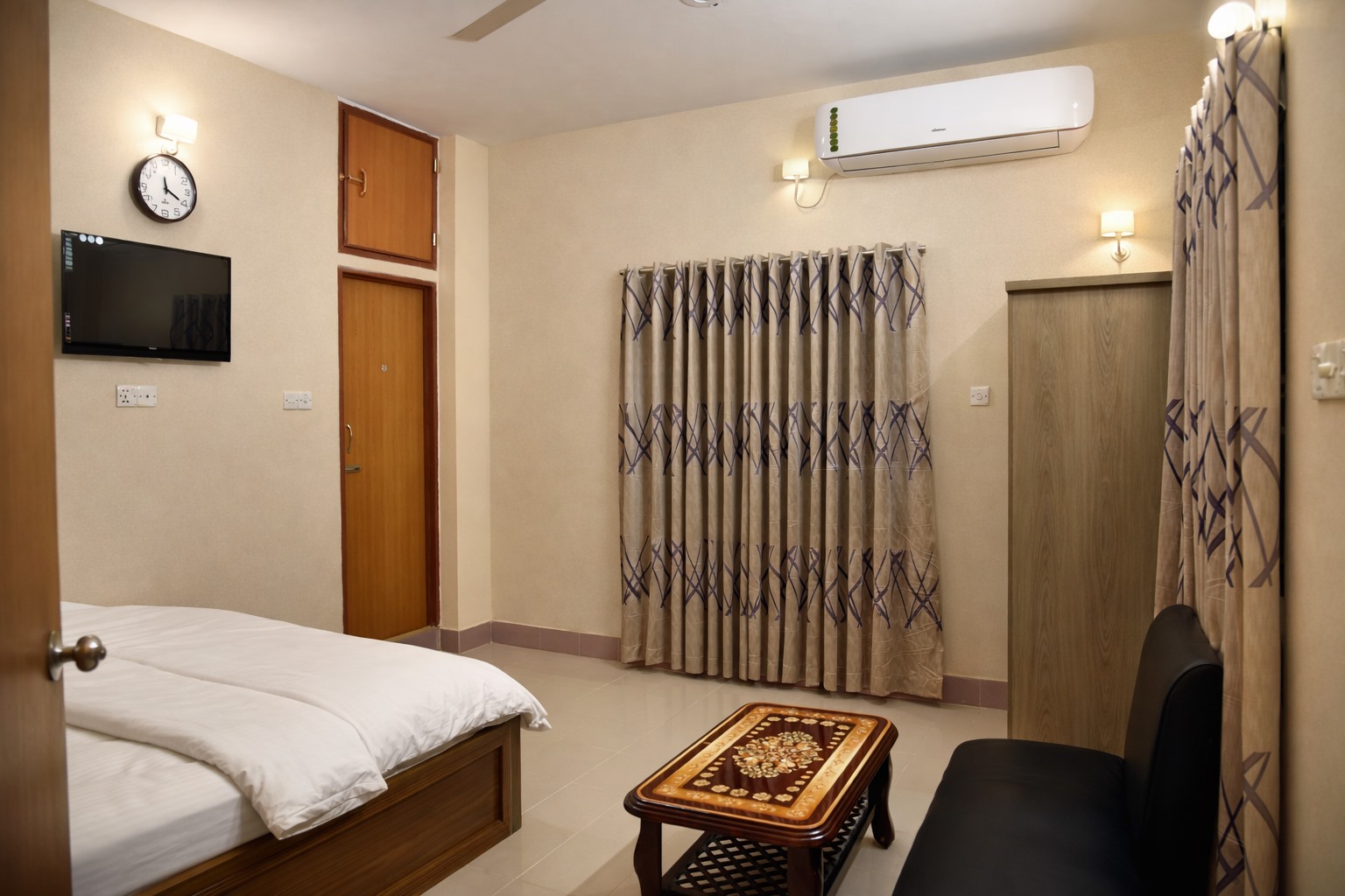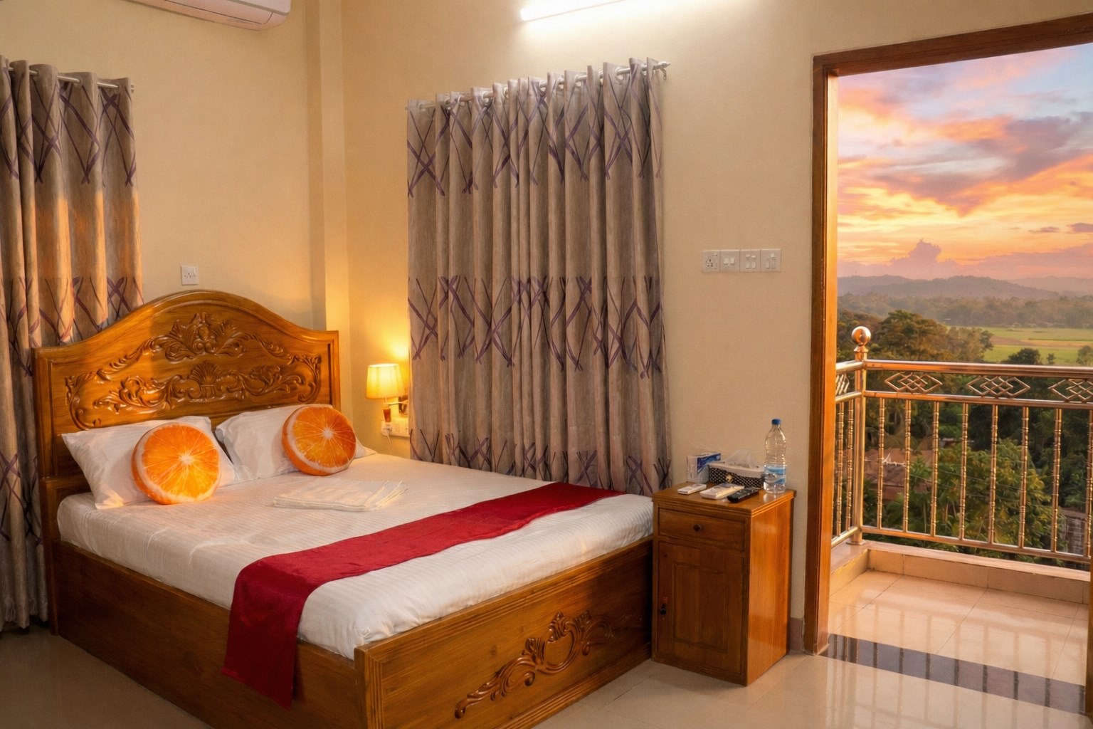Our elegant double room at Troyee Resort offers the perfect blend of comfort and tranquility. Designed for relaxation, the room features a luxurious double bed with high-quality linens, ensuring a restful night’s sleep. The room is furnished with a bedside table, a soft reading light, and a spacious wardrobe to keep your belongings neatly organized.